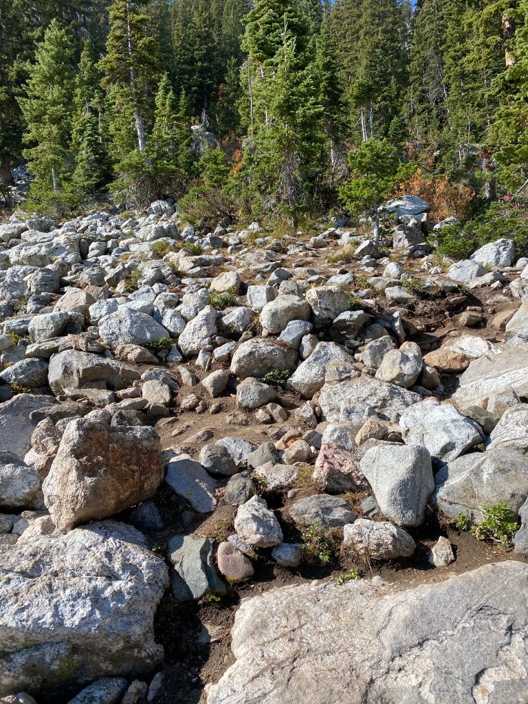 Once we completed the first boulder field we ran out of trail! We had to hike all the way back up for a better view on where to go.. Thankfully we were only about a mile out of the way.