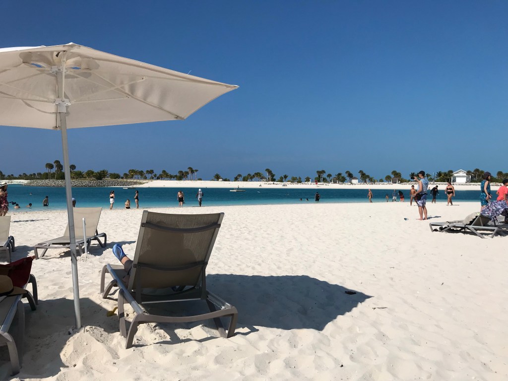 Ocean Cay is now one of our favorite ports of call. This island is owned by MSC, so it is your private oasis for the day. Once on the island there is a free shuttle that will take you around the island. If you are up for the walk, it is a nice paved walkway including signage directing you to the beaches. There are free lounge chairs in the cove area, and it is close to all the main action happening such as the bars and food.