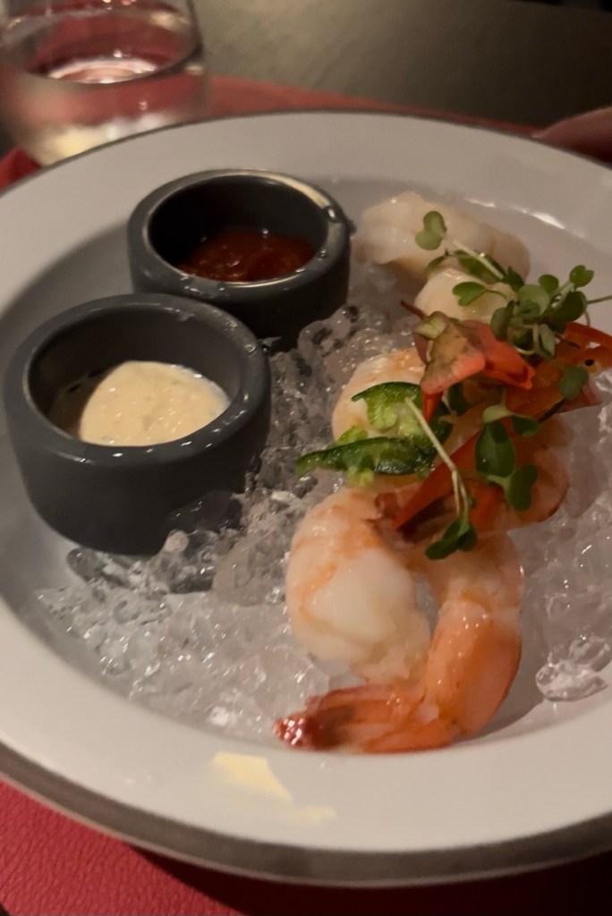 Reservations fill up very quickly. As soon as you board the ship go straight to the restaurant to make a reservation. We made reservations for the 2nd to last night of the cruise. We did not have high hopes for the steakhouse after speaking with someone earlier in the week, but they were wrong! This was one of the better steakhouses we have tried. We did the dining experience, which included 1 appetizer, 1 entree and 1 dessert. Your drink package also works at the steak house! The entire experience will take about 2 1/2-3 hours. The food was amazing! We ordered the shrimp cocktail, blueberry and Brie and House Salad for the appetizers. The main course we had was the New York Strip and Veal and for dessert we ordered the Lava Cake.